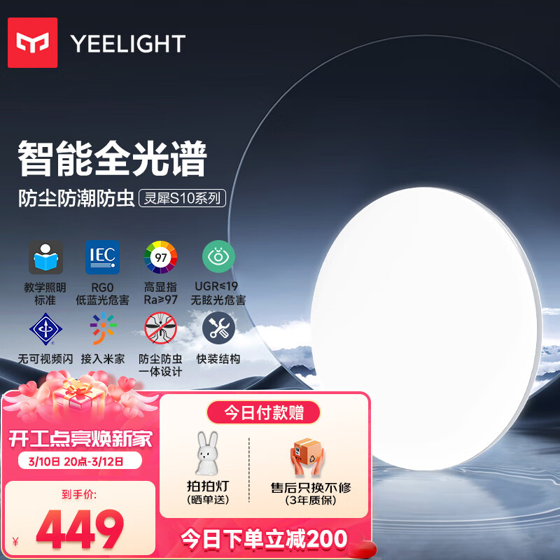 Yeelight易来led全光谱护眼吸顶灯客厅超薄智能低蓝光现代简约卧室灯C480价格:649.00元!