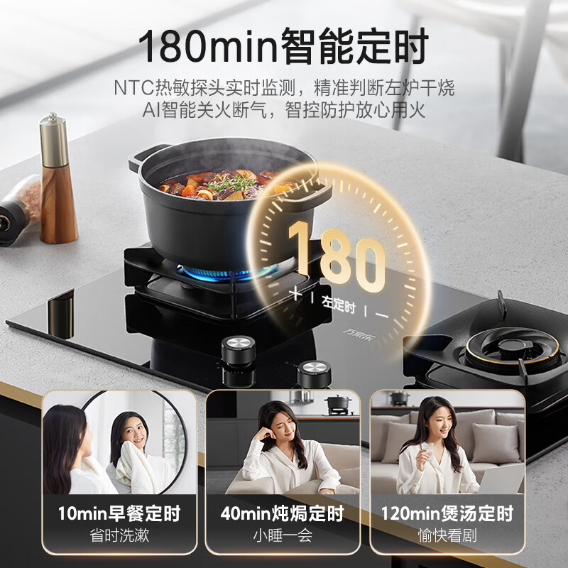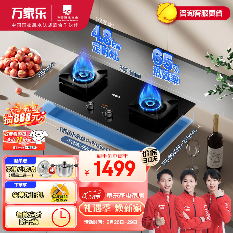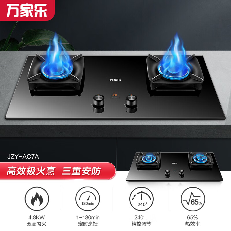 万家乐燃气灶煤气灶4.8kW猛火灶 家用智能防干烧定时三防灶台嵌两用全进风铜火盖可拆炉头灶具JZY-AC7A价格:1499.00元!