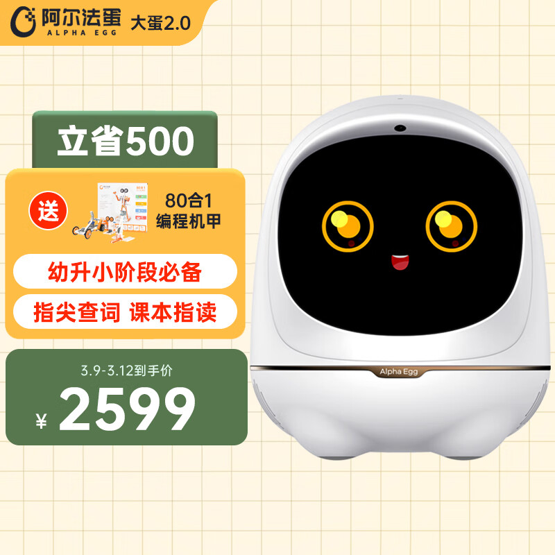 阿尔法蛋大蛋2.0 学习机器人 小学语文英语智能绘本阅读机器人 语音对话陪伴儿童早教机故事机 白色价格:3099.00元!