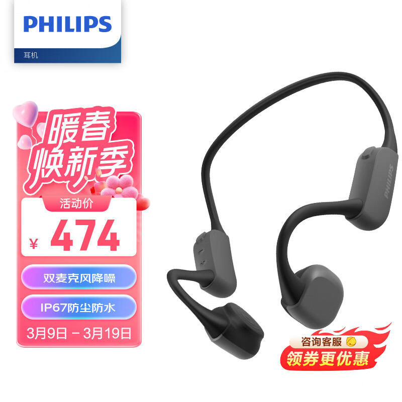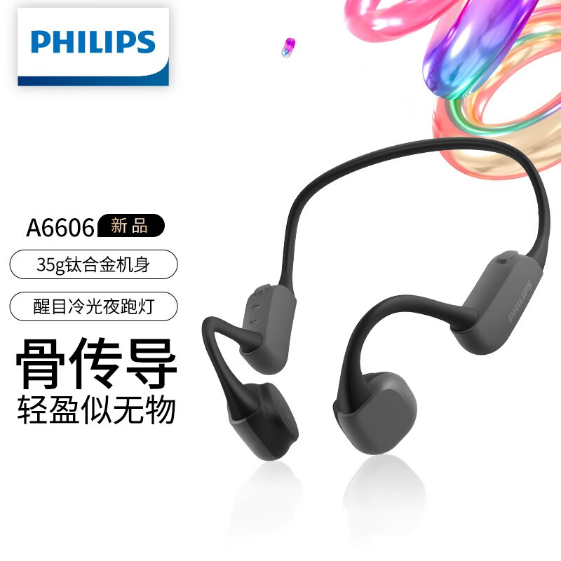 飞利浦(PHILIPS)骨传导蓝牙耳机运动无线耳机骨传导耳机跑步骑行冷光夜跑灯TAA6606黑色价格:474.00元!