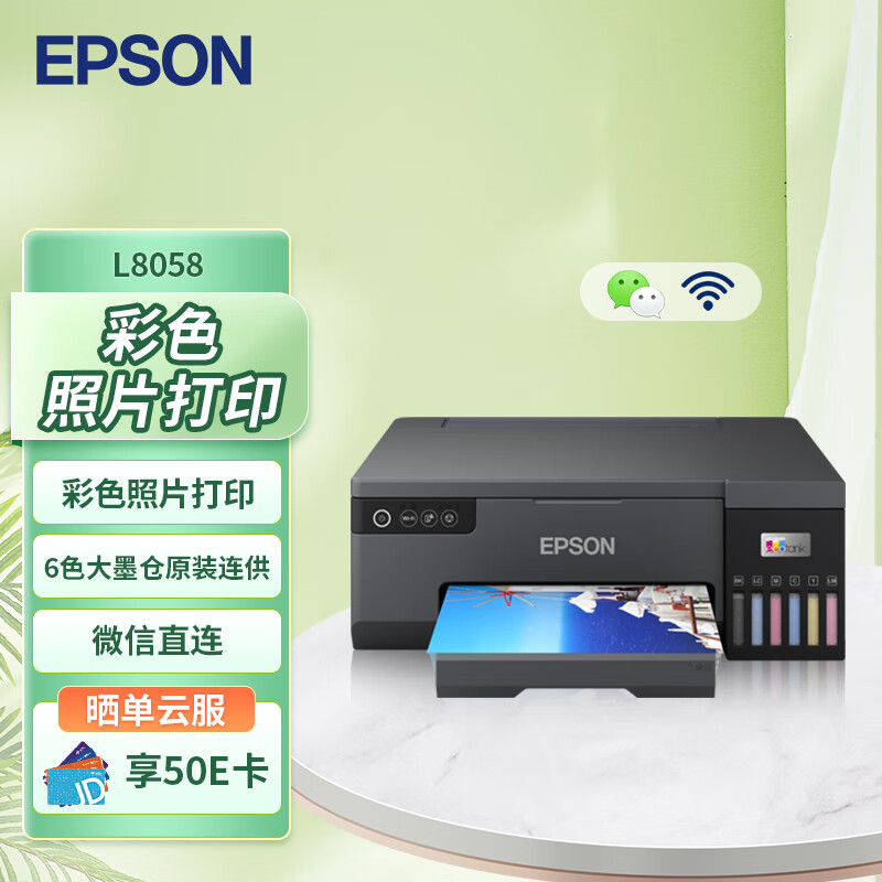 爱普生(EPSON)L8058 A4墨仓式彩色喷墨打印机家用办公 6色照片原装连供打印影楼商用 支持WiFi无线 价格:2199.00元!