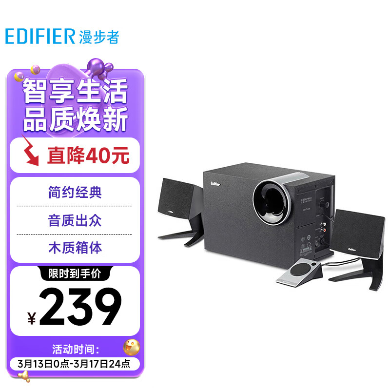 漫步者(EDIFIER) R201T北美 2.1电脑音响音箱 台式机笔记本桌面音响 游戏音响 黑色价格:239.00元!