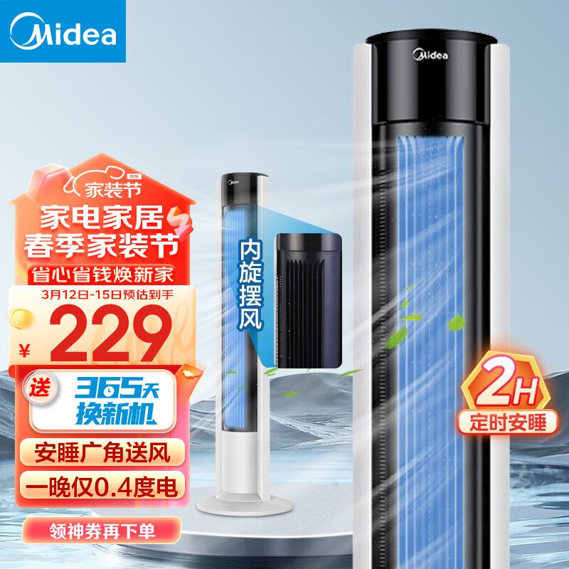 美的(Midea)电风扇家用风扇定时塔扇立式无叶落地扇智能摇头轻音节能降温柔风自然风电扇 【内旋摆风】10B价格:299.00元!