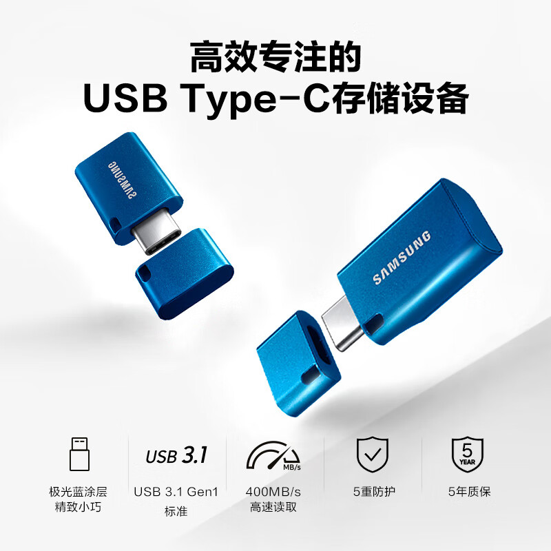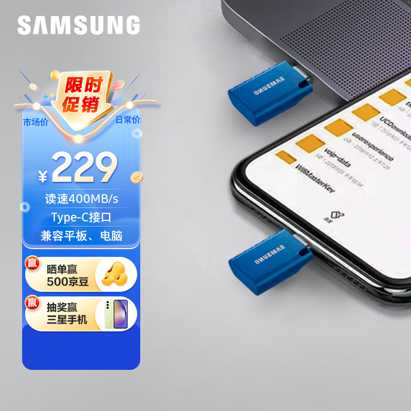 三星(SAMSUNG)256GB Type-C 手机U盘 读速400MB/s 大容量高速手机平板电脑两用 学生办公优盘价格:229.00元!