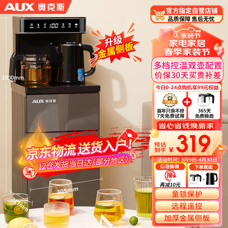 奥克斯(AUX)茶吧机 家用温热长效保温 智能遥控立式款 多功能调温数显大屏下置水桶茶吧机YCB-57价格:319.00元!