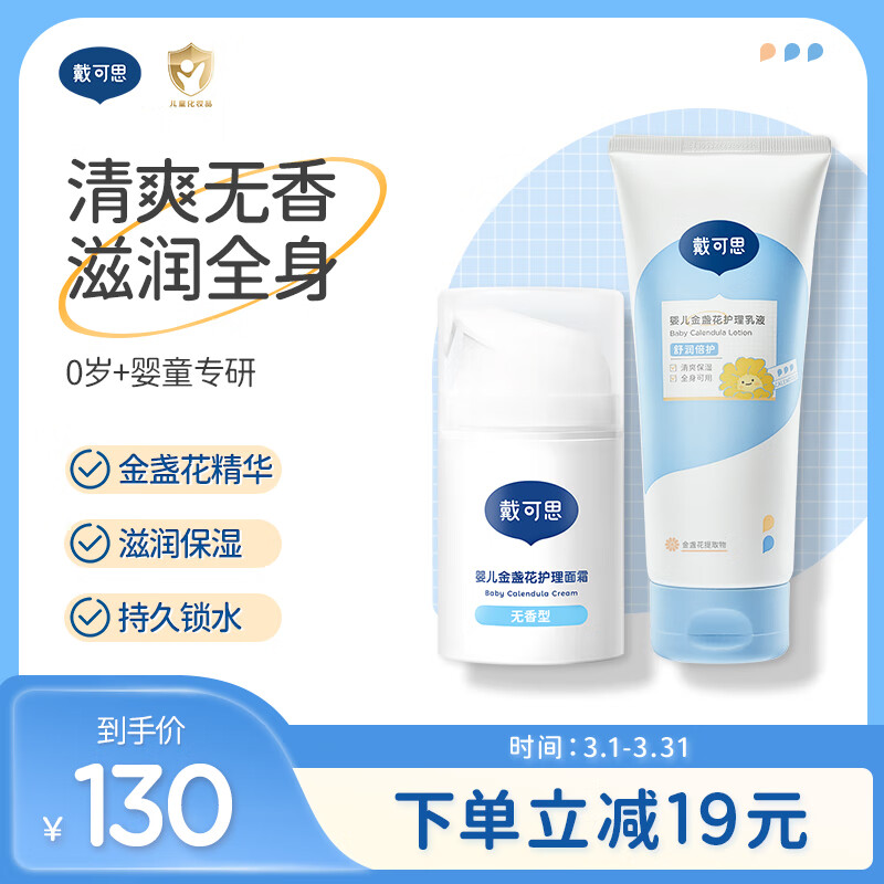戴·可·思(Dexter)婴幼儿金盏花护理套装 面霜50g+身体乳200ml 保湿补水润肤乳组合价格:149.00元!