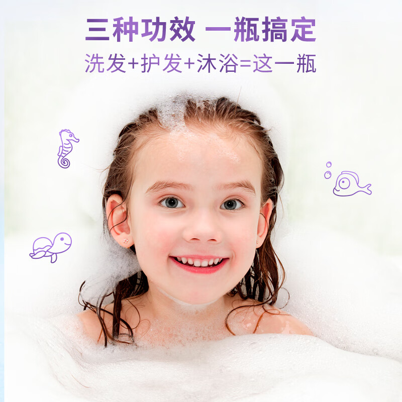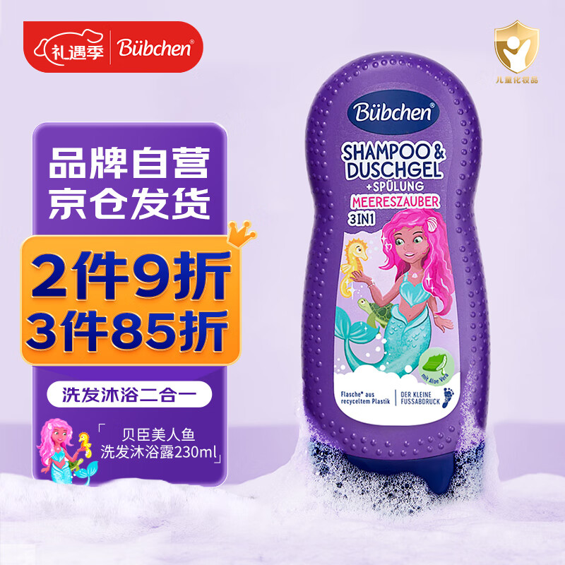 贝臣(Bübchen)德国美人鱼儿童洗发水专用女孩3-15护发素沐浴露三合一女宝洗护发价格:59.90元!