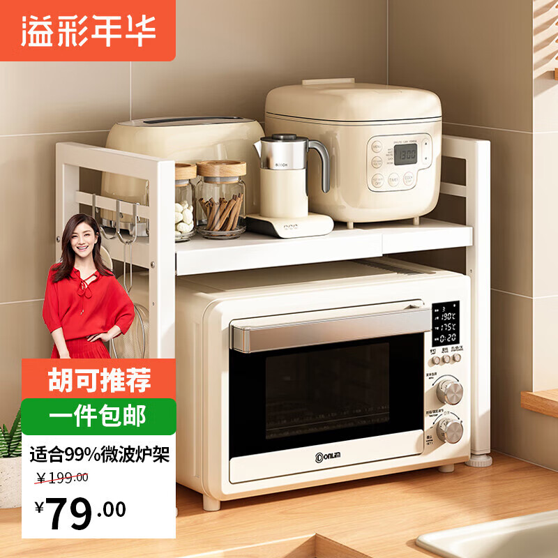 溢彩年华厨房置物架微波炉架可伸缩烤箱架台面收纳架子双层白色7230-WH价格:129.00元!