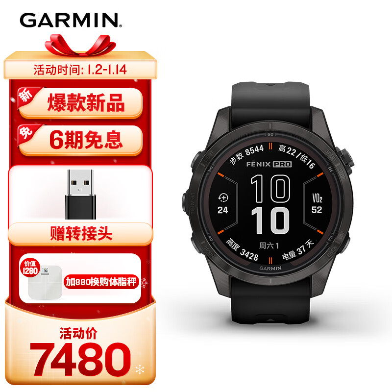佳明(GARMIN)Fenix7S Pro太阳能旗舰版黑色(42mm)心率跑步高尔夫户外运动手表价格:7480.00元!