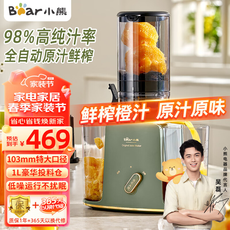 小熊(Bear)原汁机 家用小型榨汁机汁渣分离 全自动多功能冷压炸果蔬机 超大口径果汁机 YZJ-D01Y6价格:469.00元!