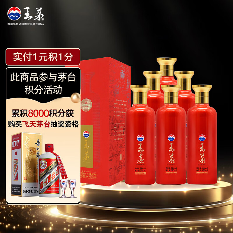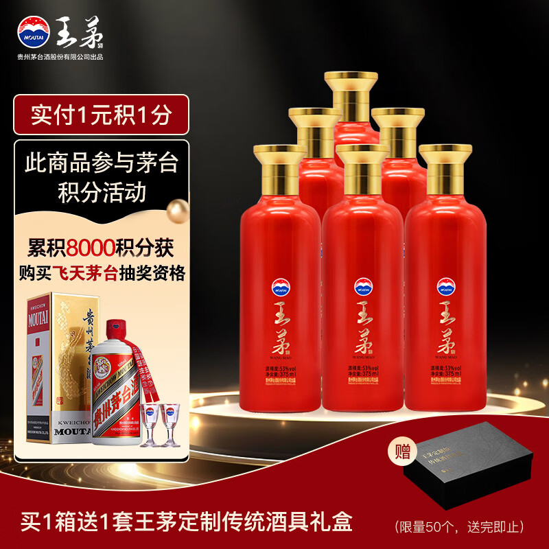茅台 王茅 祥泰红茅 酱香型白酒 53度 375ml*6瓶 整箱装 商务送礼价格:3354.00元!