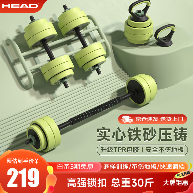 HEAD海德哑铃男女通用杠铃壶铃组合套装可调节拆卸家用健身器材15kg价格:219.00元!