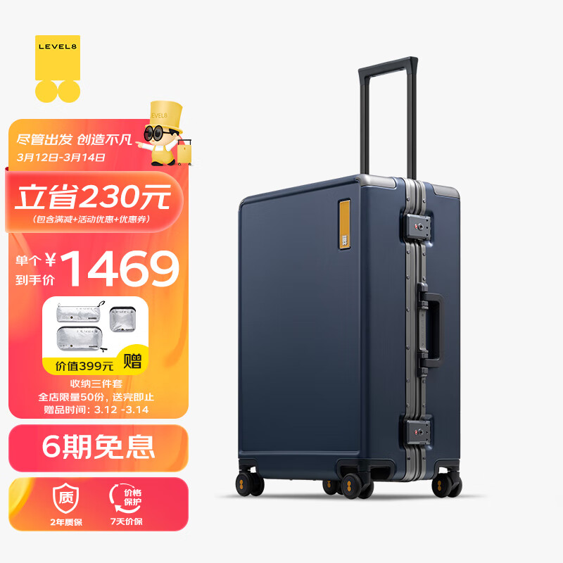 地平线8号(LEVEL8)行李箱男女粗铝框旅行箱24英寸拉杆密码箱PC拉杆箱氦系列蓝色价格:1699.00元!