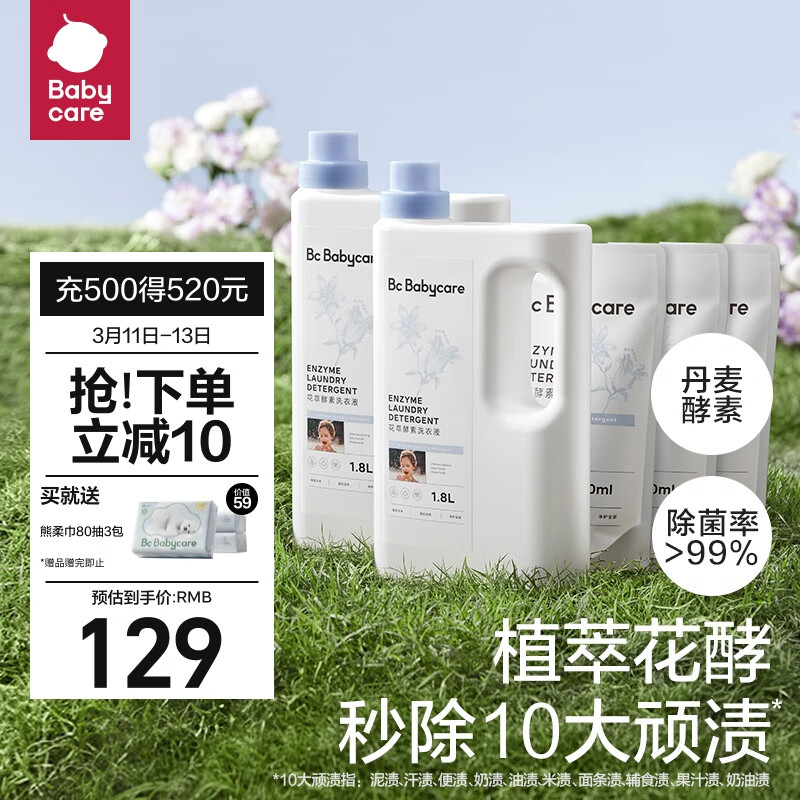 babycare儿童花萃酵素洗衣液 去污除菌香氛洗衣液 维也纳蓝风铃 5.1L价格:139.00元!