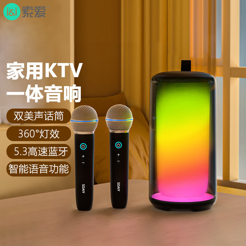索爱(soaiy)K69蓝牙音箱电脑音响重低音炮家用无线喇叭车载迷你户外炫彩小便携大功率游戏收款黑色带2个麦克风价格:299.00元!