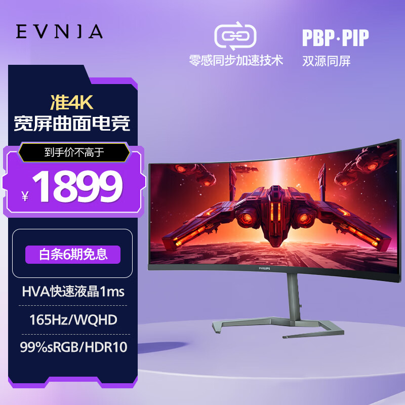 飞利浦 34英寸 曲面带鱼屏准4K WQHD165Hz HVA快速液晶1msHDR 电竞显示器 PS5游戏屏 IF设计奖34M1C5500V价格:2199.00元!