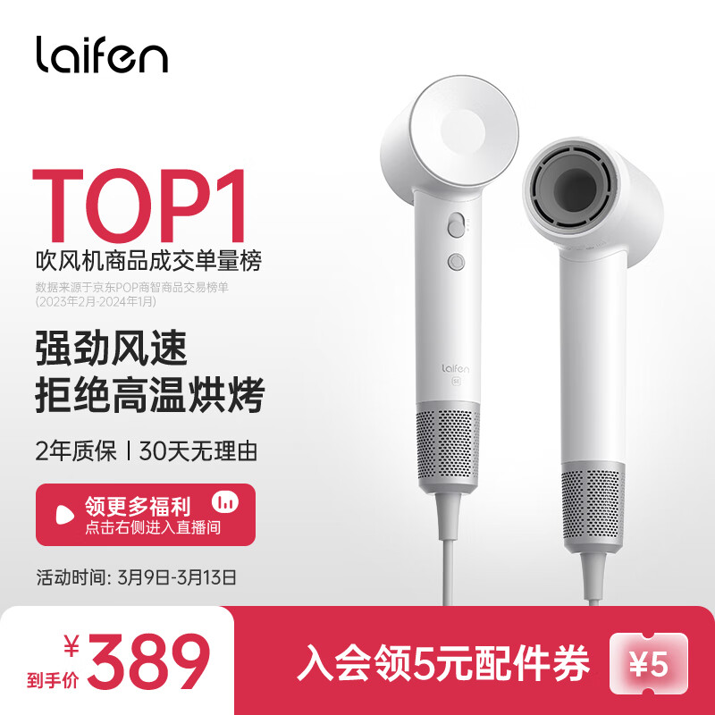 徕芬Laifen SE 家用吹风机 大功率速干电吹风 莱芬负离子大风力不伤发风筒 SE白色价格:600.00元!