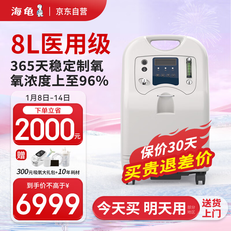 海龟V8系列8L大流量医用级制氧机老人氧气机家用双人吸氧8L大流量吸氧机V8-WN-NS价格:8999.00元!