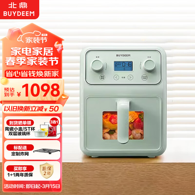 北鼎(Buydeem)空气炸锅家用多功能无油炸锅4L大容量 可视化窗口 健康低油烹饪精准温控F51【浅杉绿】价格:1098.00元!