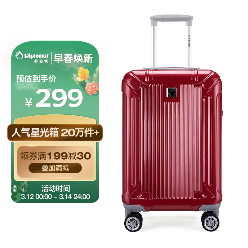 Diplomat外交官行李箱20英寸扩充层拉杆箱男旅行箱登机密码婚嫁箱女TC-601价格:399.00元!