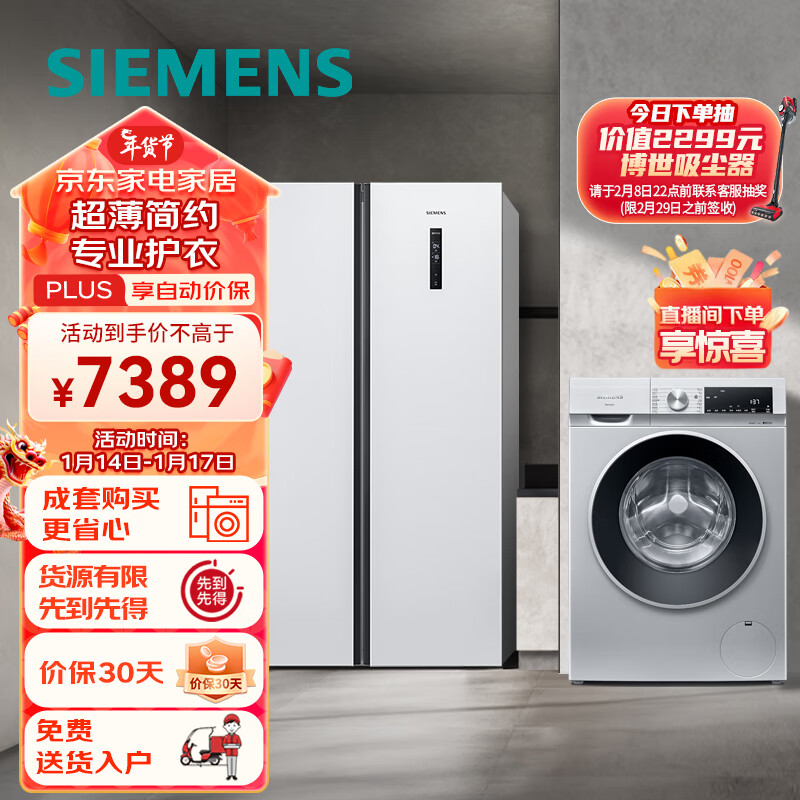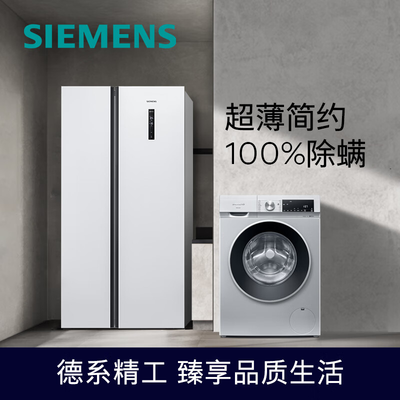 西门子(SIEMENS)冰洗套装 502L超薄嵌入式冰箱+10KG智能精准除渍洗衣机 KA50NE20TI+WG52A108AW价格:7389.00元!