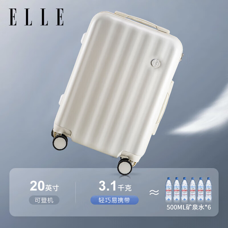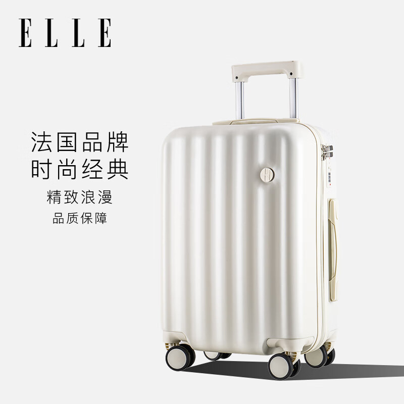 ELLE法国行李箱26英寸白色时尚轻奢女士拉杆箱小清新高颜值轻便旅行箱价格:279.00元!