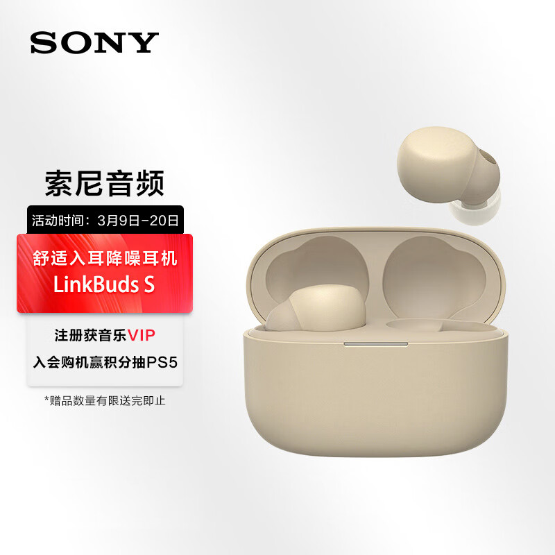 索尼(SONY)linkBuds S 舒适入耳 真无线降噪耳机 蓝牙5.2 淡褐色价格:899.00元!