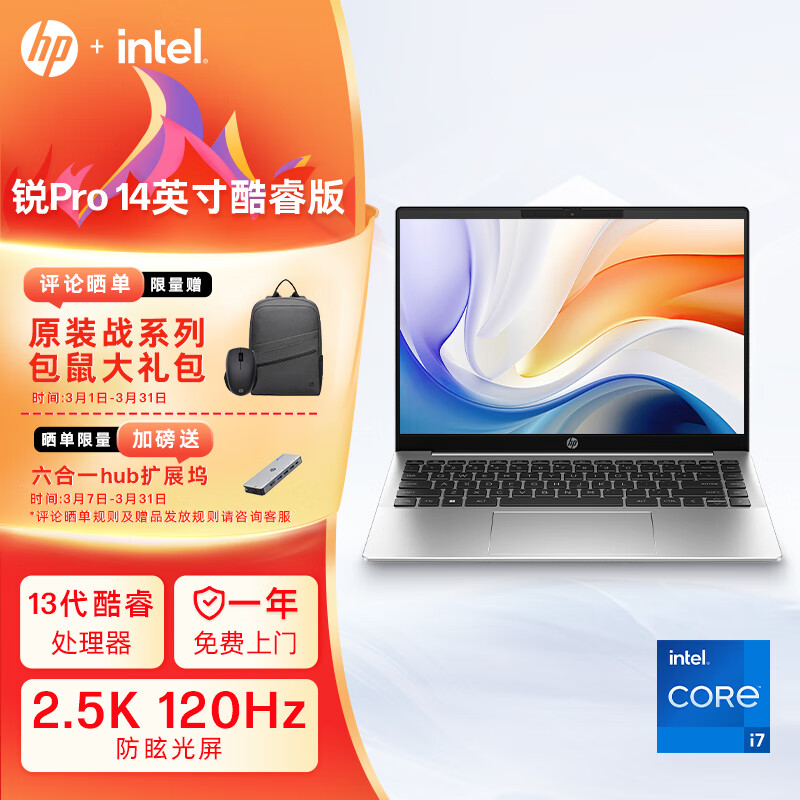 惠普(HP)锐Pro 14英寸轻薄笔记本电脑(英特尔酷睿13代i7-1360P 高频16G 1T 2.5K高色域 Evo 长续航高性能)价格:5699.00元!