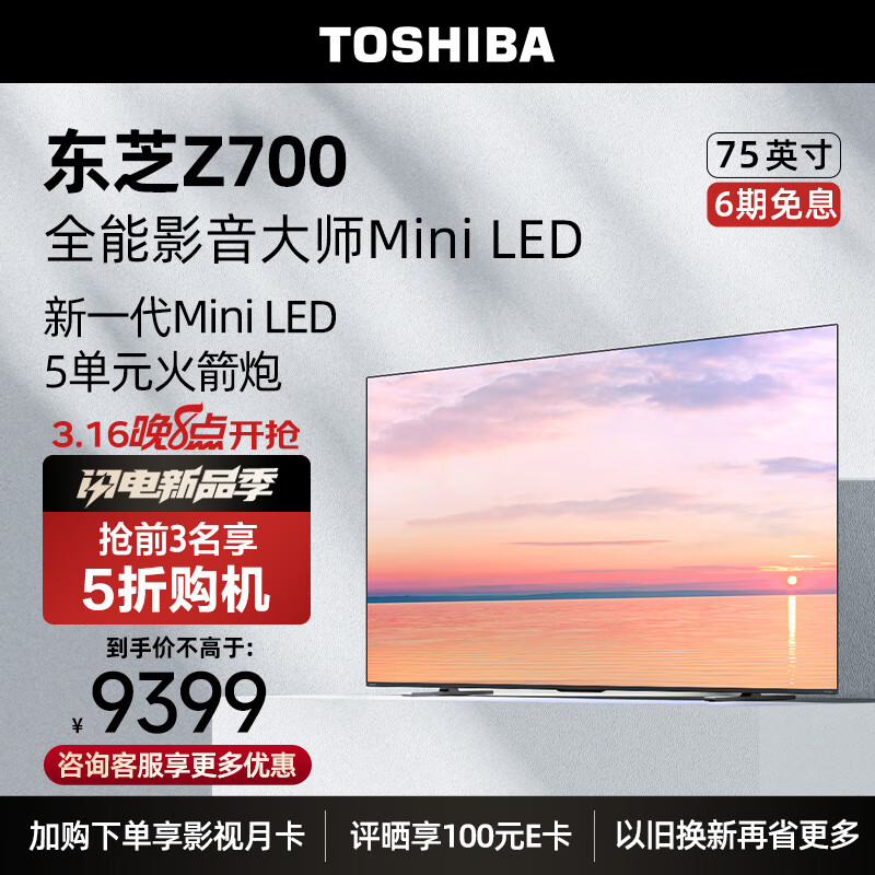东芝电视75Z700MF 75英寸高端Mini LED 4K144Hz高刷屏65w火箭炮音响 客厅液晶平板游戏电视机 以旧换新价格:9399.00元!