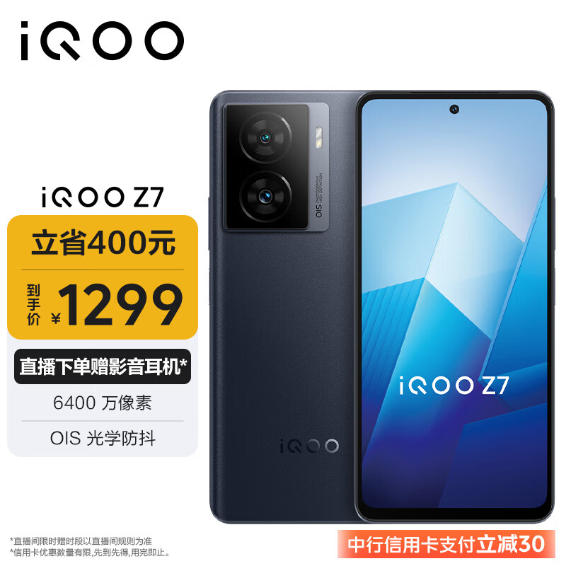 vivo iQOO Z7 12GB+256GB深空黑 120W超快闪充 等效5000mAh强续航 6400万像素 OIS光学防抖 5G手机iqooz7价格:1699.00元!