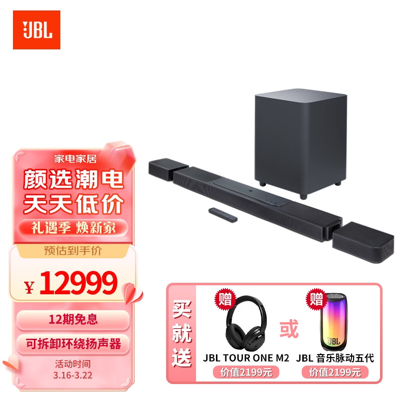 JBLBAR1300X 旗舰款 11.1.4杜比全景声回音壁 真无线影霸 电视音响 家庭影院音箱套装 蓝牙Soundbar价格:12999.00元!