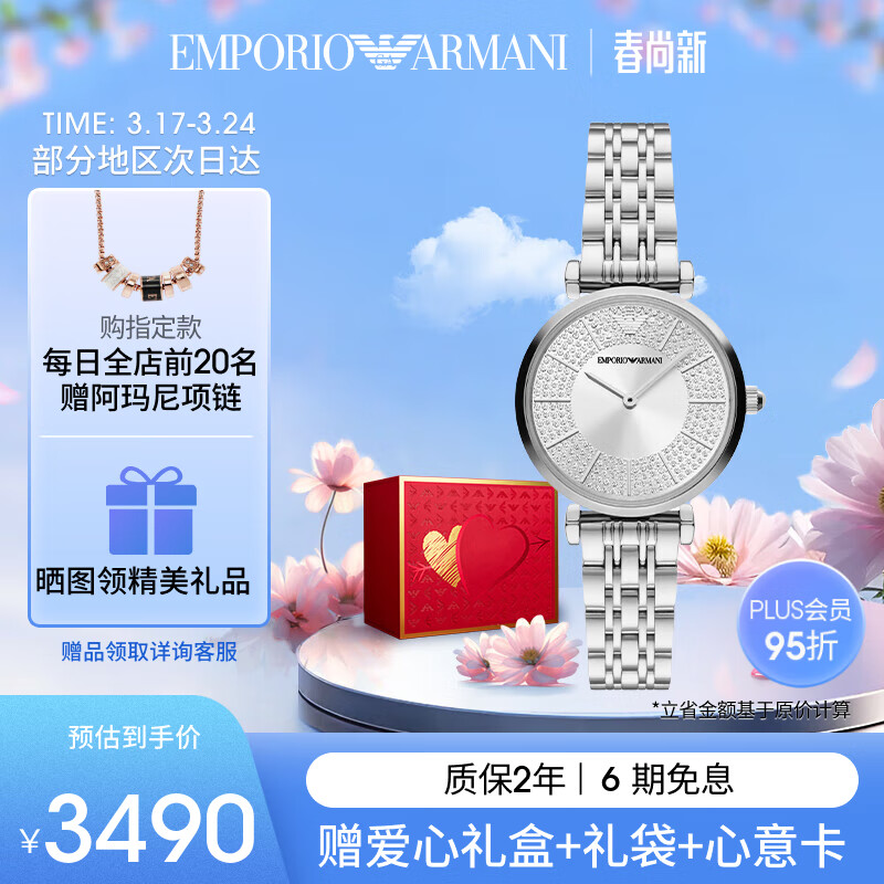 安普里奥·阿玛尼(Emporio Armani)手表女士满天星系列休闲石英时尚镶钻女表生日礼物 送女友AR11445价格:3490.00元!