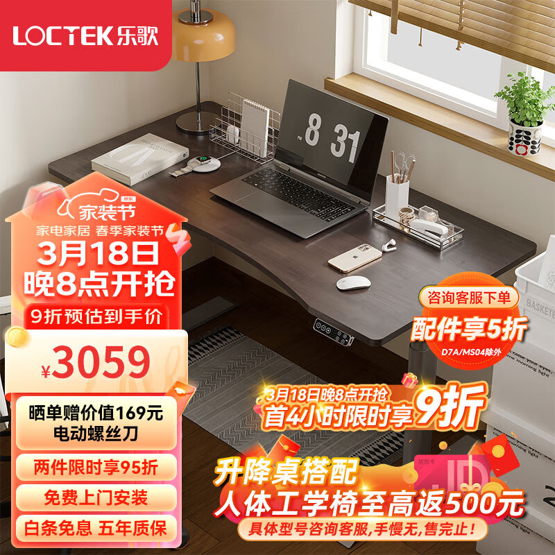 乐歌电动升降桌电脑桌站立办公学习桌 E6/1.6m 凹型实木黑胡桃木色价格:3399.00元!