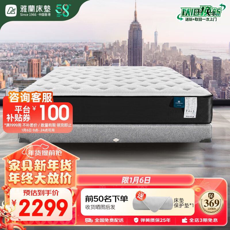 雅兰50周年纪念款 软硬适中独袋弹簧乳胶床垫 蘭朋友舒适2.0 1.5*2米价格:2899.00元!