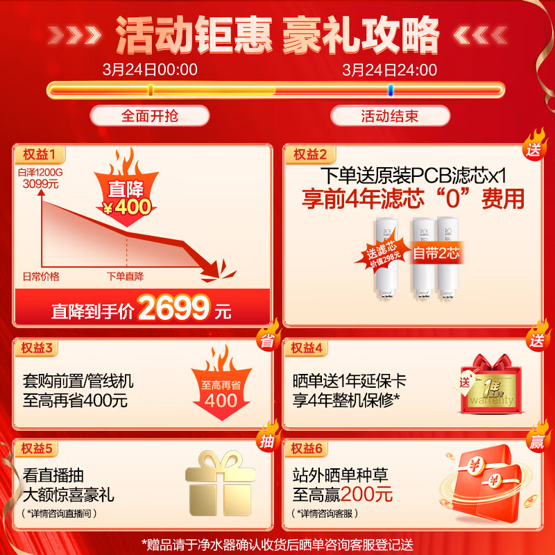 美的(Midea)净水器家用净水机白泽1200G 6年RO反渗透 厨下式净水器直饮净饮机 大通量3L/分价格:2699.00元!