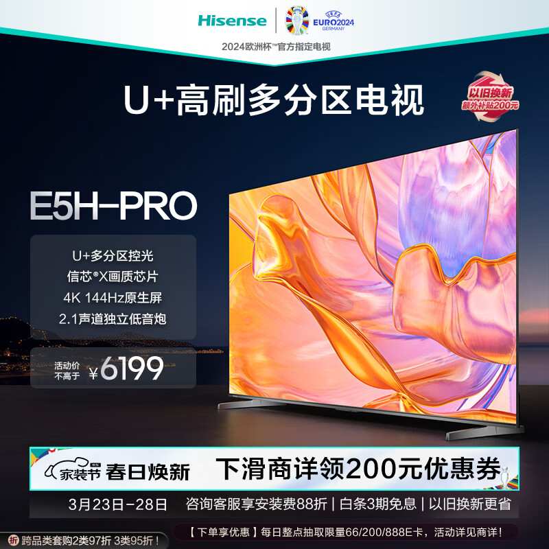 海信电视85E5H-PRO 85英寸 多分区控光 4K 144Hz智慧屏 2.1声道独立低音炮 液晶平板电视机 以旧换新价格:6399.00元!