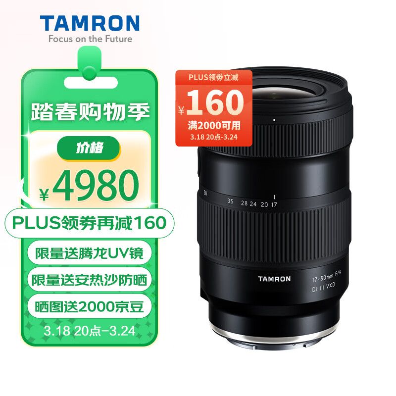腾龙(Tamron)A068S 17-50mm F/4 Di III VXD大光圈超广角内变焦微单镜头风光人像旅行(索尼全幅E口)价格:4980.00元!