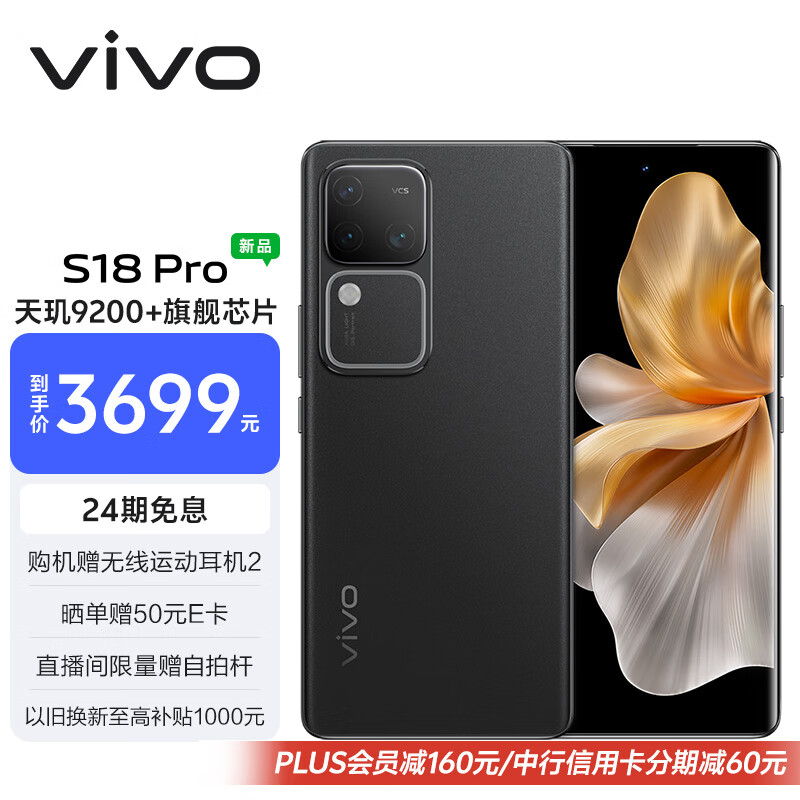 vivo S18 Pro 16GB+512GB 玄黑 天玑9200+旗舰芯片 后置影棚级柔光环 5000mAh超薄蓝海电池 拍照 手机价格:3699.00元!