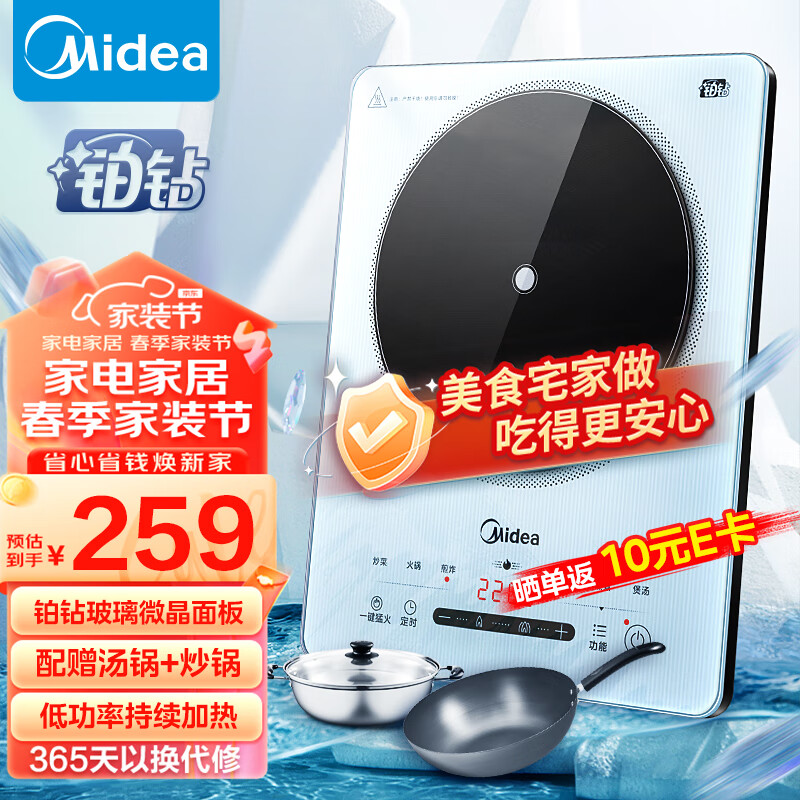 美的(Midea)铂钻系列 家用电磁炉 2200W大功率 电磁灶火锅炉 爆炒定时多功能电磁炉套装 MC-E22B27价格:259.00元!