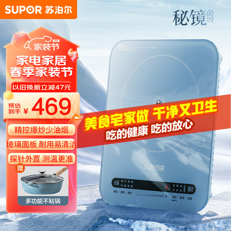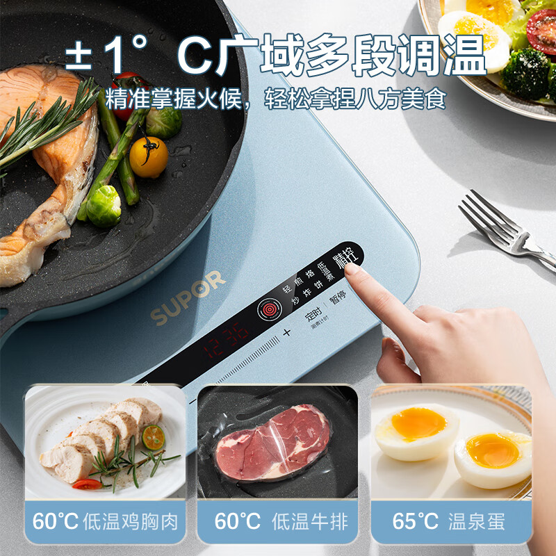 苏泊尔(SUPOR)精控秘镜系列 电磁炉 家用大功率 大面板 电磁灶火锅炉 22段火力 定时多功能电磁炉套装C22-ID76E价格:469.00元!