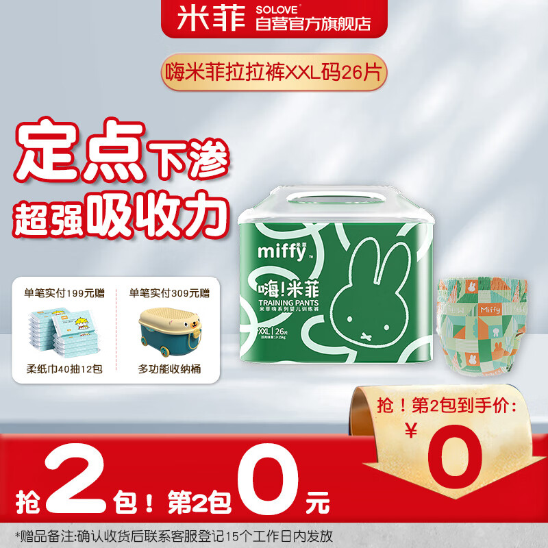 solove米菲嗨米菲拉拉裤XXL码26片(15kg以上)柔软透气定点下渗尿裤单包价格:169.00元!