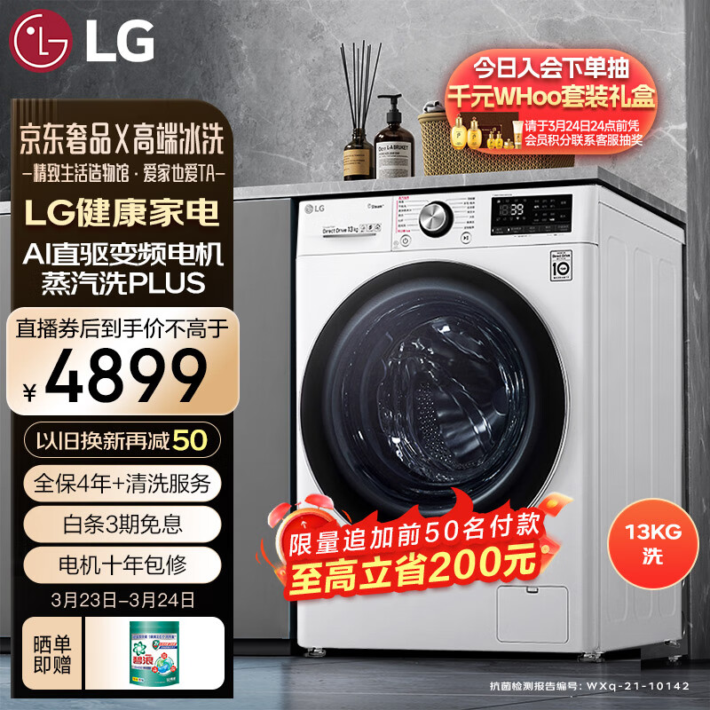 LG容慧系列13KG大容量全自动滚筒洗衣机 360°速净喷淋 蒸汽PLUS除菌除皱 AI直驱变频 白色FCV13G4W价格:5099.00元!