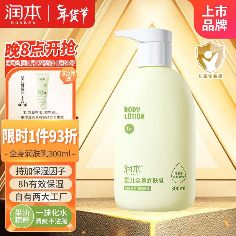 润本(RUNBEN)婴儿全身润肤乳300ml儿童面霜身体乳宝宝润肤霜补水保湿乳滋润型价格:34.90元!