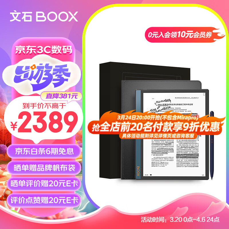 BOOX文石 NoteX2 礼盒版 10.3英寸电子书阅读器 墨水屏电纸书电子纸 办公学习平板 语音转文字 4+64G价格:2389.00元!