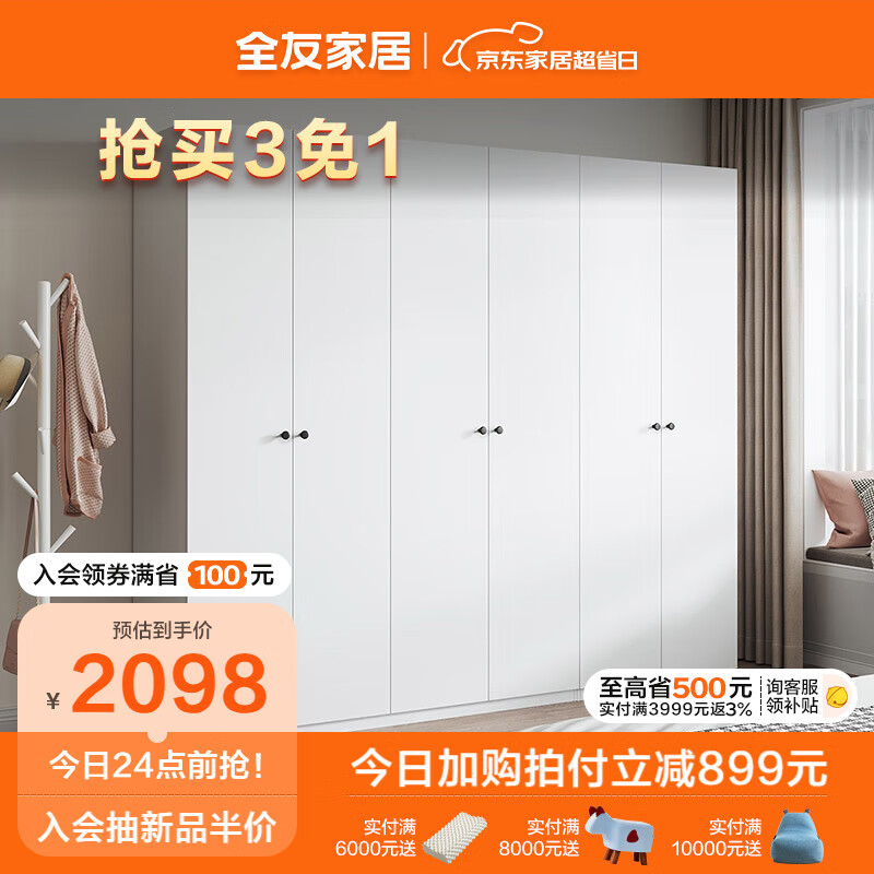 全友家居 衣柜简约风卧室衣物收纳纯色百搭多规格平开门家具DG10009价格:2997.14元!