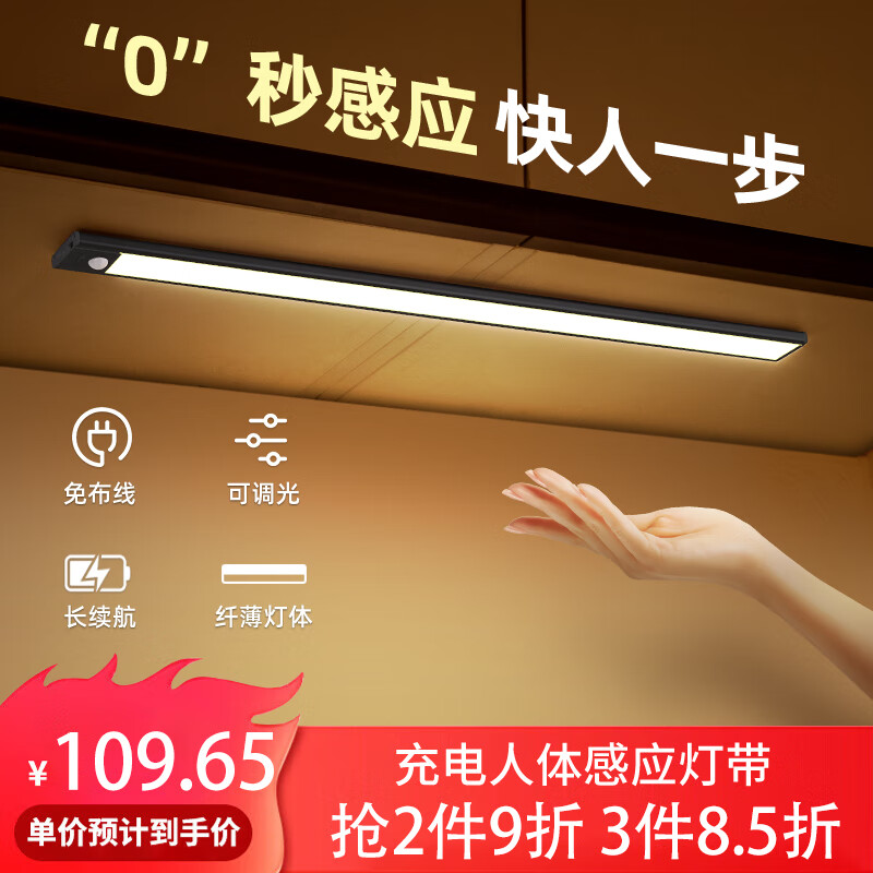 心有所属感应橱柜灯带充电无线小夜灯人光感衣鞋柜玄关酒柜灯条免接线磁吸价格:129.00元!