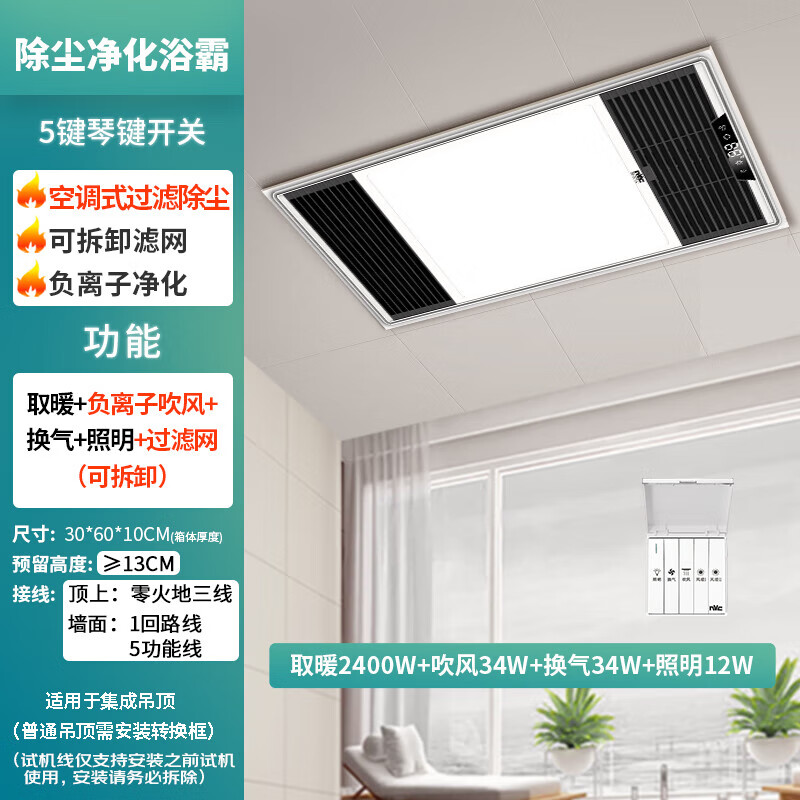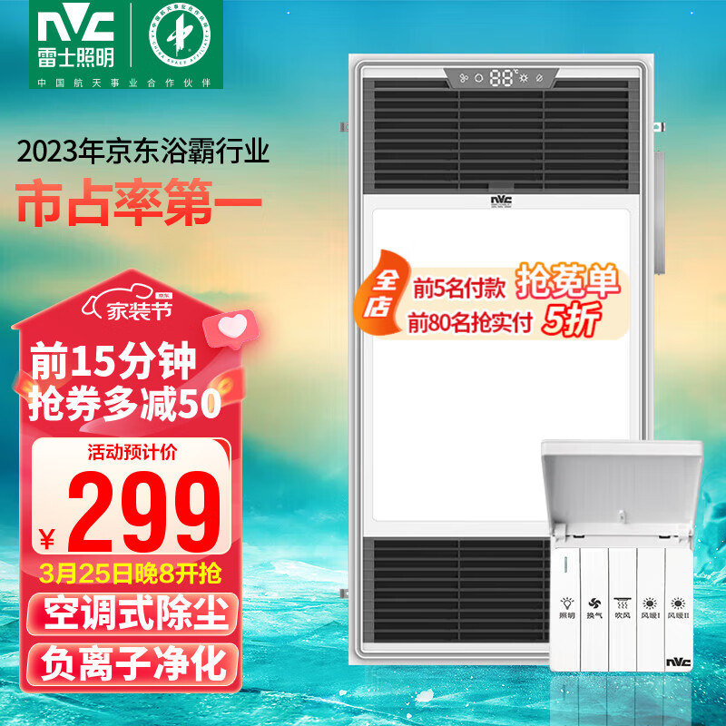 雷士(NVC)过滤净化除尘风暖卫生间浴霸排气扇照明一体强劲双核浴室暖风机价格:599.00元!