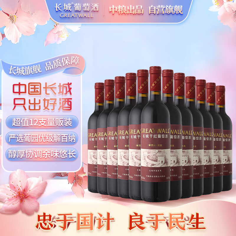 长城 华夏葡园 解百纳优选干红葡萄酒 750ml*12瓶 整箱装价格:385.00元!