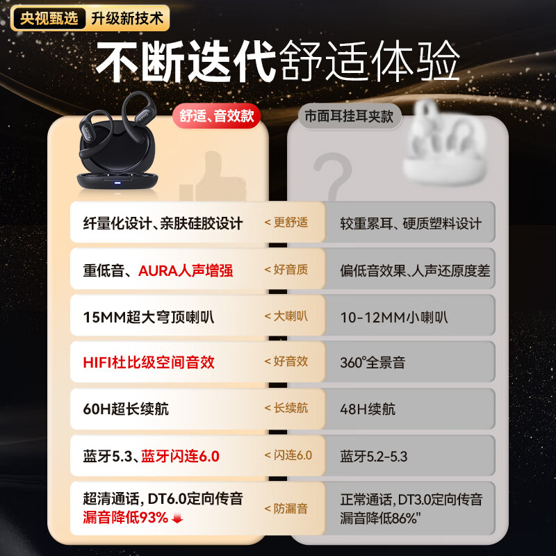 SANAG【高级舒适耳机】Z66蓝牙耳机挂耳式骨传导概念不入耳运动骑行降噪高端商务通用礼物 炫酷黑价格:342.00元!