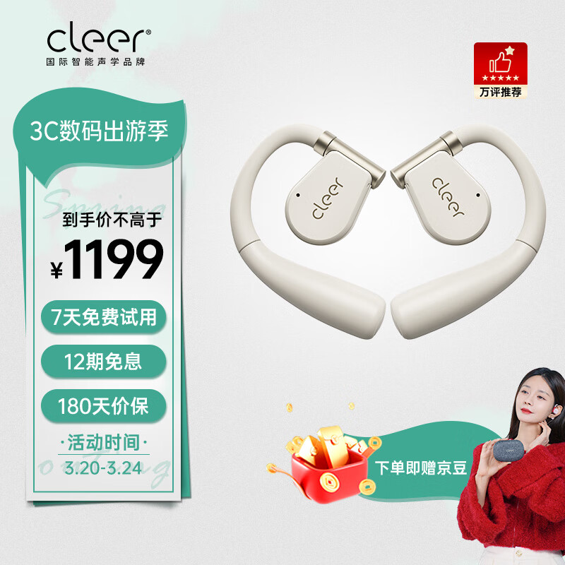 cleer任贤齐代言ARCII不入耳开放式夹耳智能无线蓝牙耳机开车挂耳式骨传导升级适用苹果华为节日礼物 天鹅白【音乐版】价格:1799.00元!